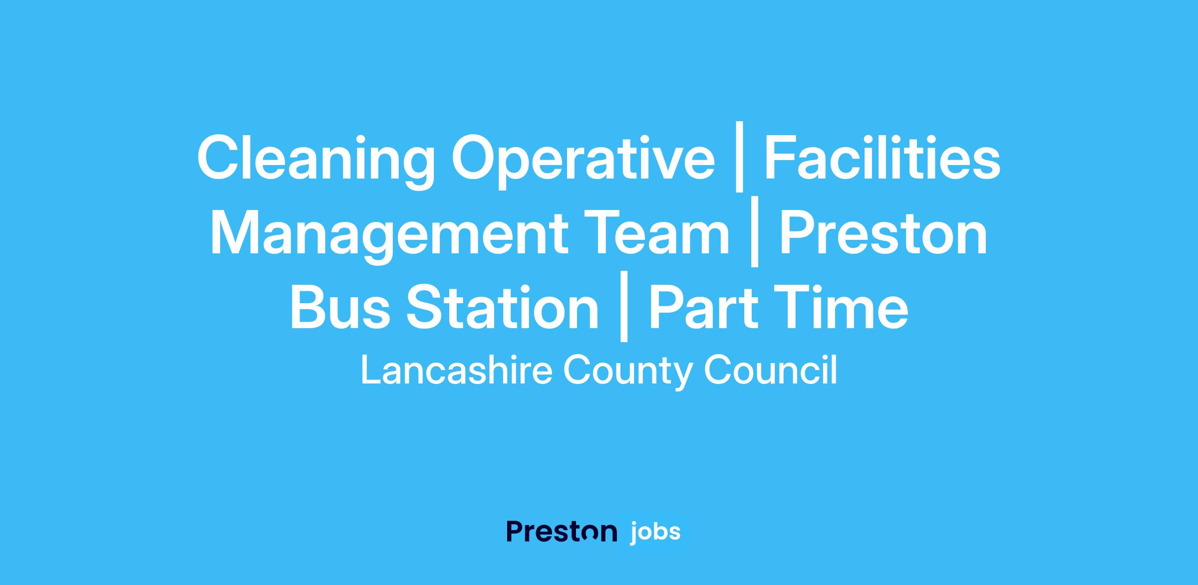 The Facilities Management Team at Lancashire County Council are looking to recruit a Cleaning Operative who is required to carry out cleaning duties at Preston Bus Station.