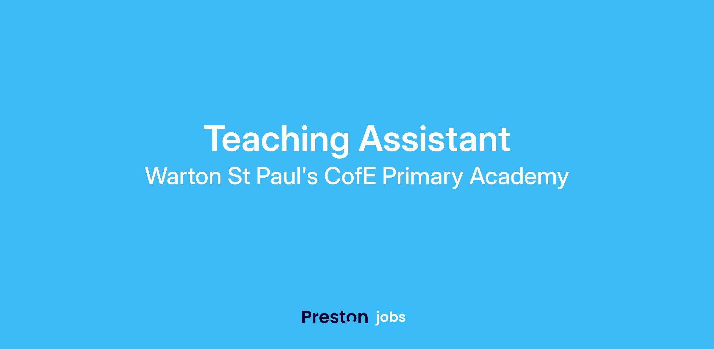 We have an exciting opportunity for a strong candidate to support teaching and learning at Warton St Paul's Church of England Primary Academy. This role is varied, and we are looking for an adaptable, flexible and resourceful individual who is able to cope in a high-pressure environment and deal with constantly changing priorities. The successful candidate will join us at an exciting time in the life of our school and assist in meeting the personal, social and educational needs of our children.